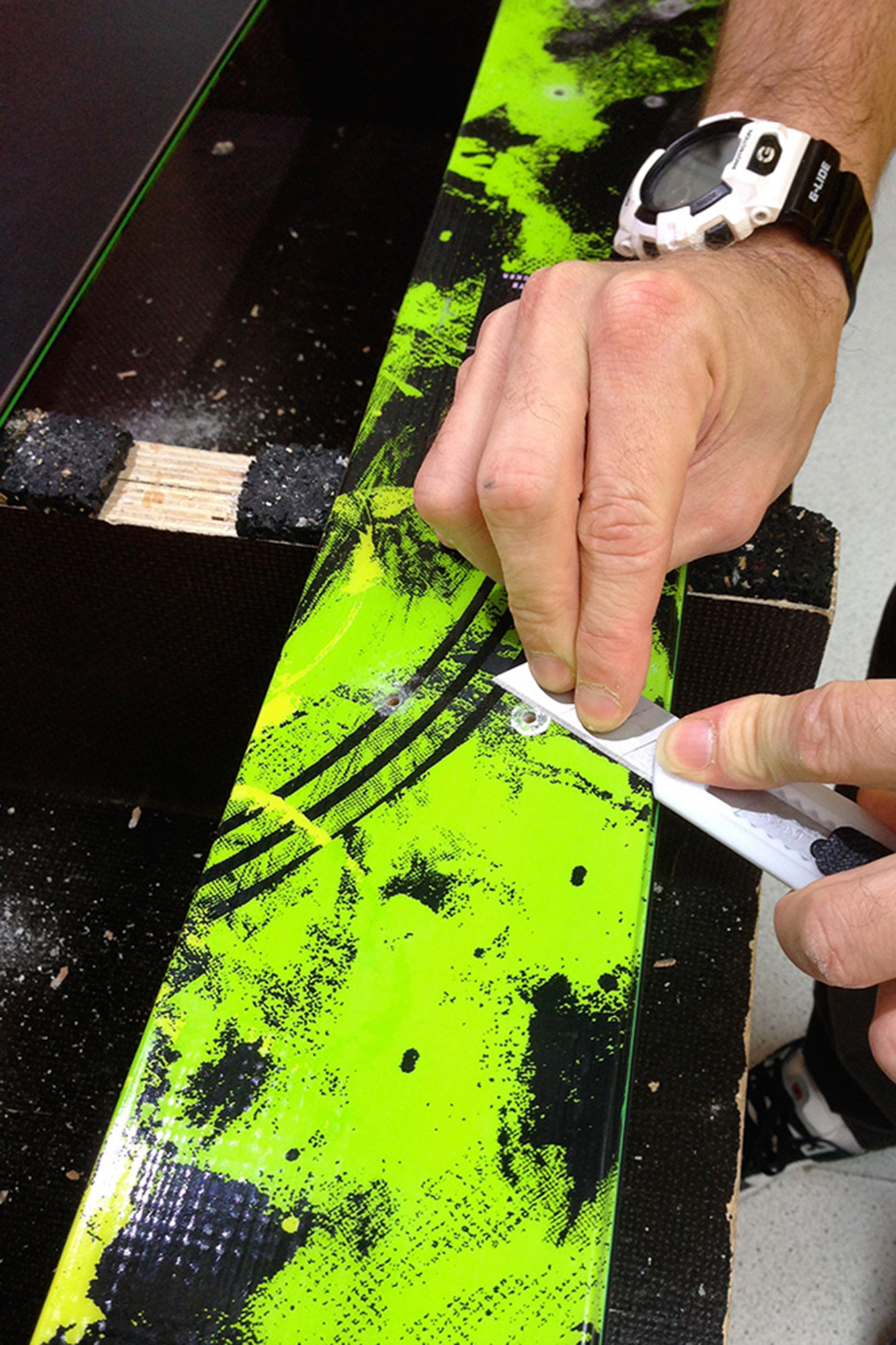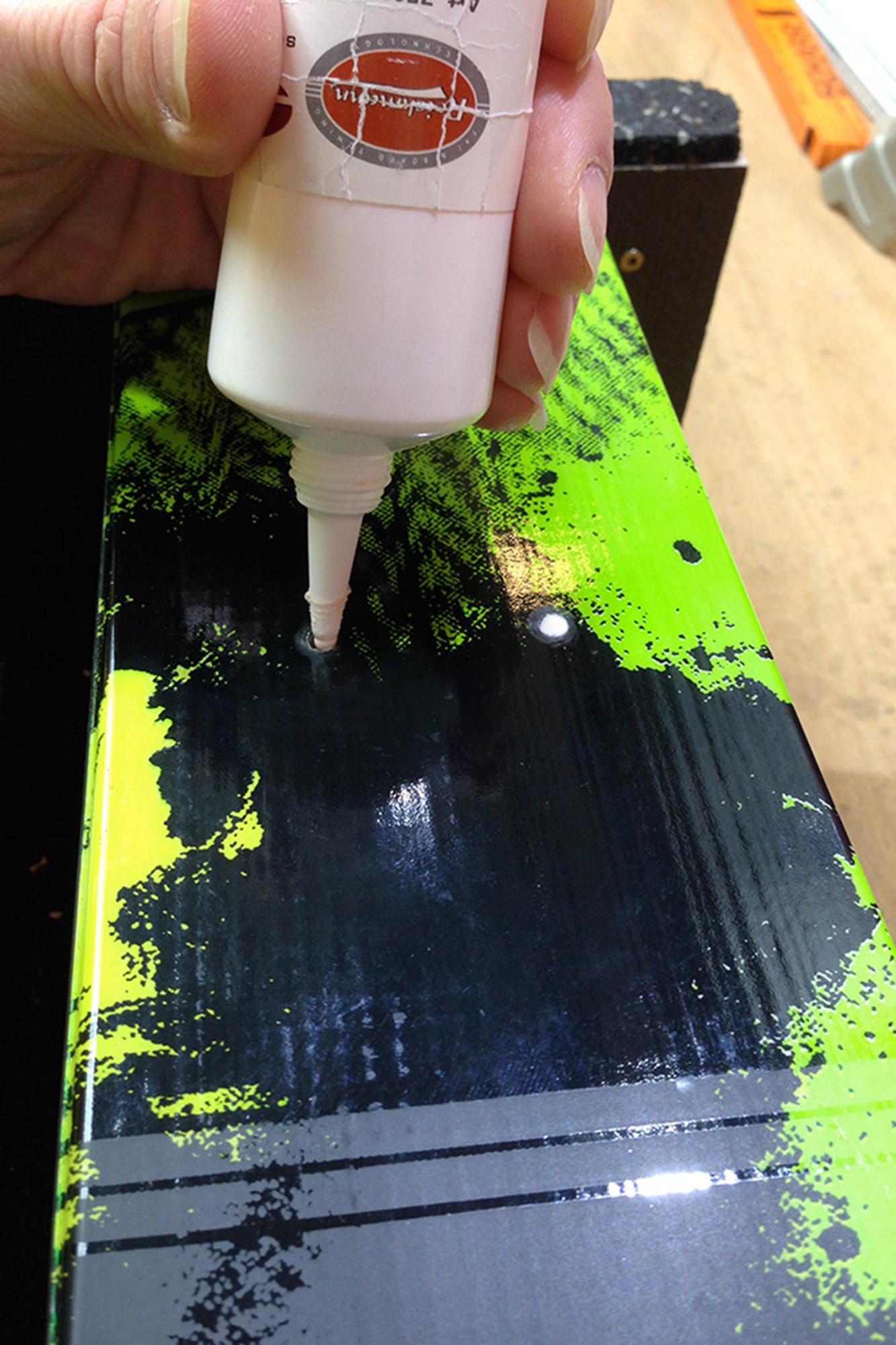- Capovolgi lo sci e sbatti la base per rimuovere i trucioli dai fori praticati. Meglio ancora se puoi aspirare tutti i fori (fig. 11).