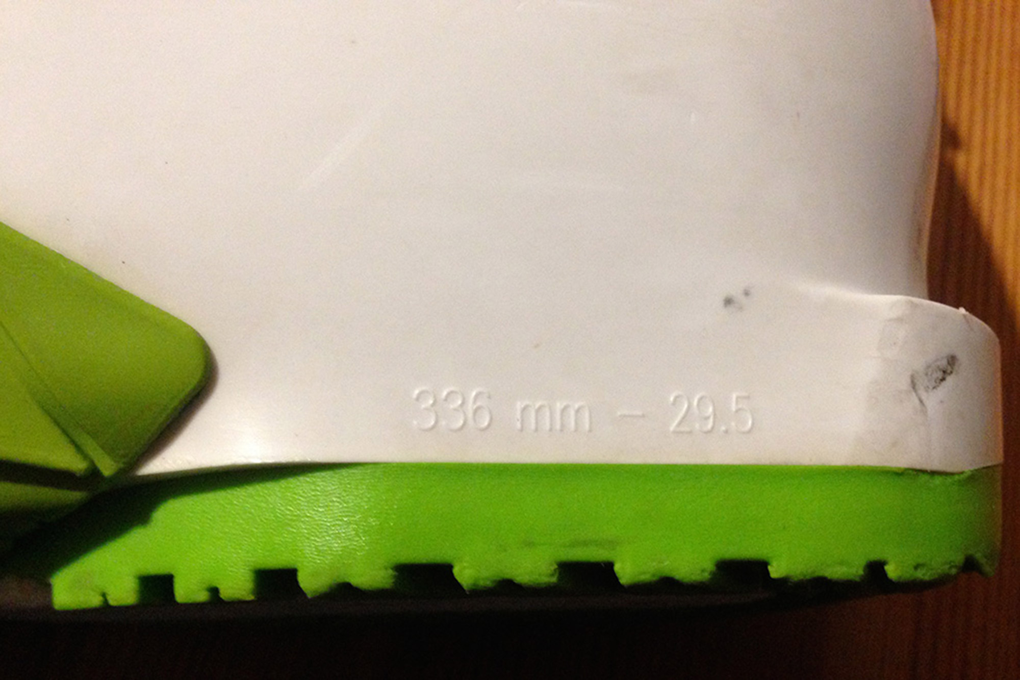 - Lunghezza della suola dello scarpone da sci: l’attacco deve essere sempre montato e regolato secondo lo scarpone desiderato e quindi rispettando la lunghezza dello scarpone. Attenzione: il campo di regolazione della lunghezza dell’attacco è limitata dopo il montaggio. Ogni scarpone ha una cosiddetta lunghezza della suola, che deve essere segnata e presa in considerazione durante il montaggio. Di solito si trova questa specifica a tre cifre (in mm) sulla parte esterna dello scarpone, nella zona del tallone (figura 2). Se non vi fosse indicato nulla, o se l’informazione non è più riconoscibile, la lunghezza della suola stessa deve essere rimisurata, dalla punta della scarpa all’estremità del tacco della suola (Figura 3).